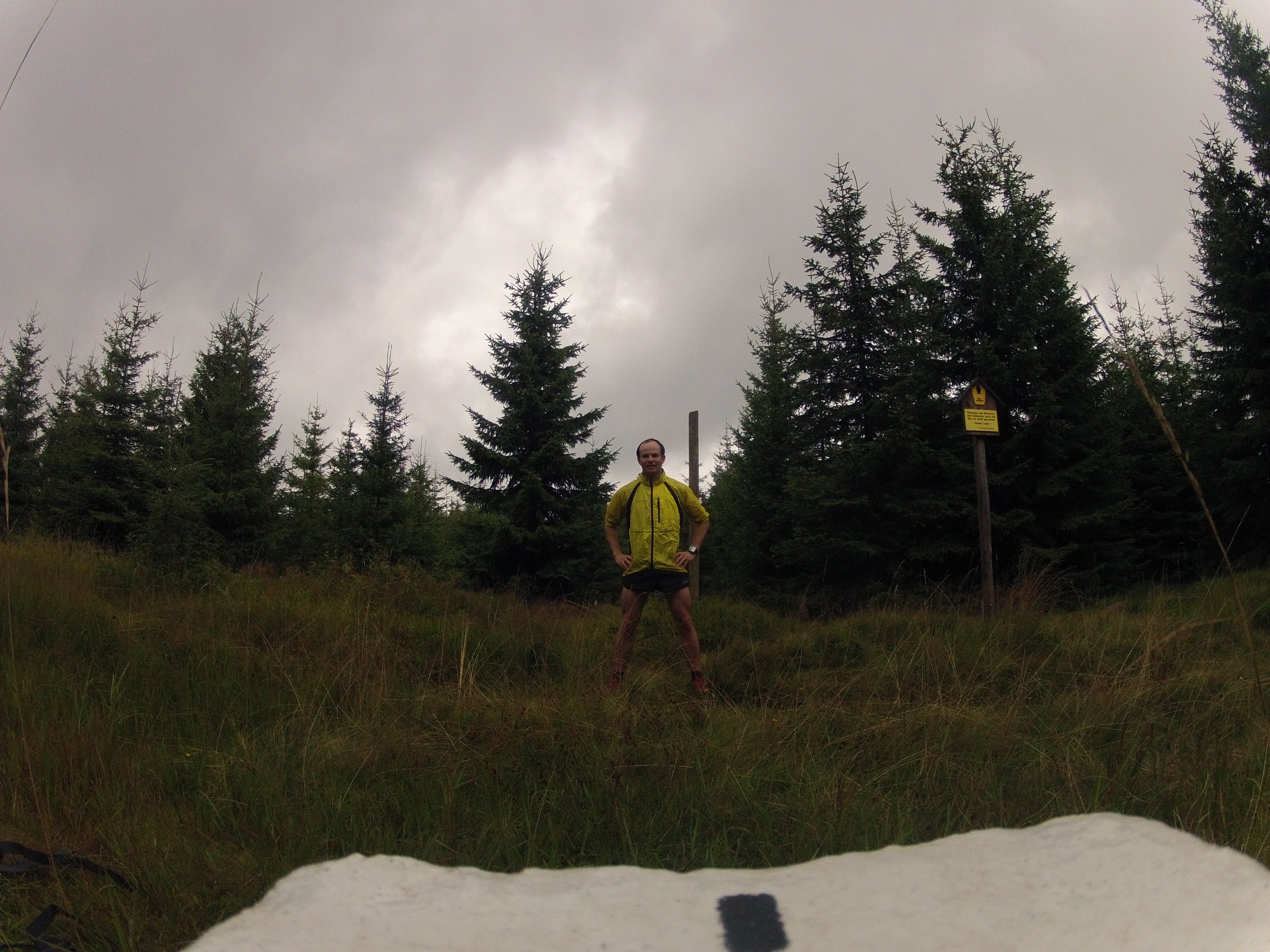I arrived at the boarder and it was almost a bit of a let down. All that was there was a trench and a few markers. I had a quick pause for photos then headed alongside the boarder for a bit. As I ran along in isolation thunder and lighting got louder and closer. The whole way I was feeling just that little bit uncomfortable. Eventually I got close to the point I was going to cut back into Czech and I spotted a boarder building, slightly worried that it might be manned and I had no ID on me I quickly took a pee on the German side (for my Dutch relatives!) and then cut through the bushes evading detection just like in th e movies. Once back clearly in Czech the rain got worse and I started to get cold but apart from that it was really nice forest and I ducked of the track again to claim another one of the rogaining controls. In this one little area I spotted 3 deer the only other living things I saw the whole way. I made it back to the house undetected by humans and in one piece.