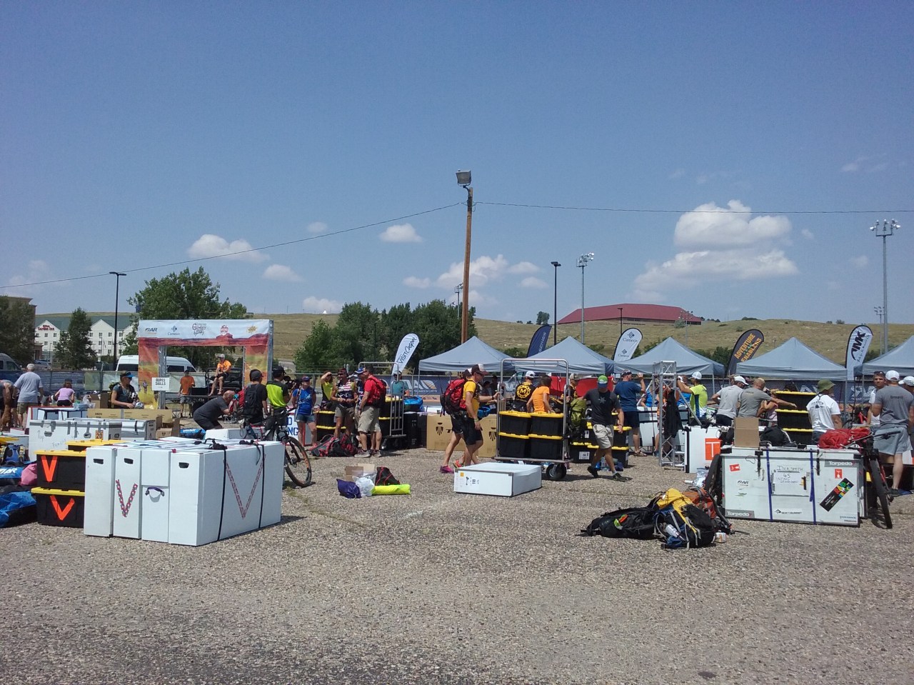 The Chaotic staging area. Everyone was packing and repacking, we wandered up weighted in and walked off like pros – no problem!